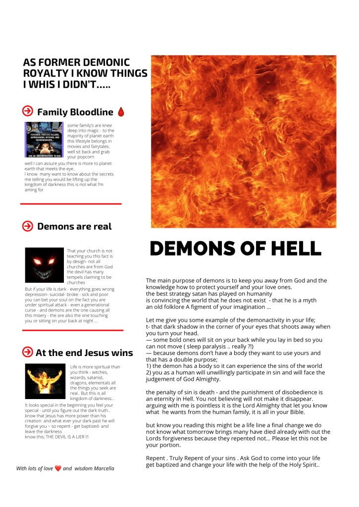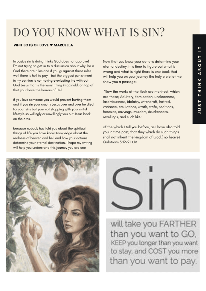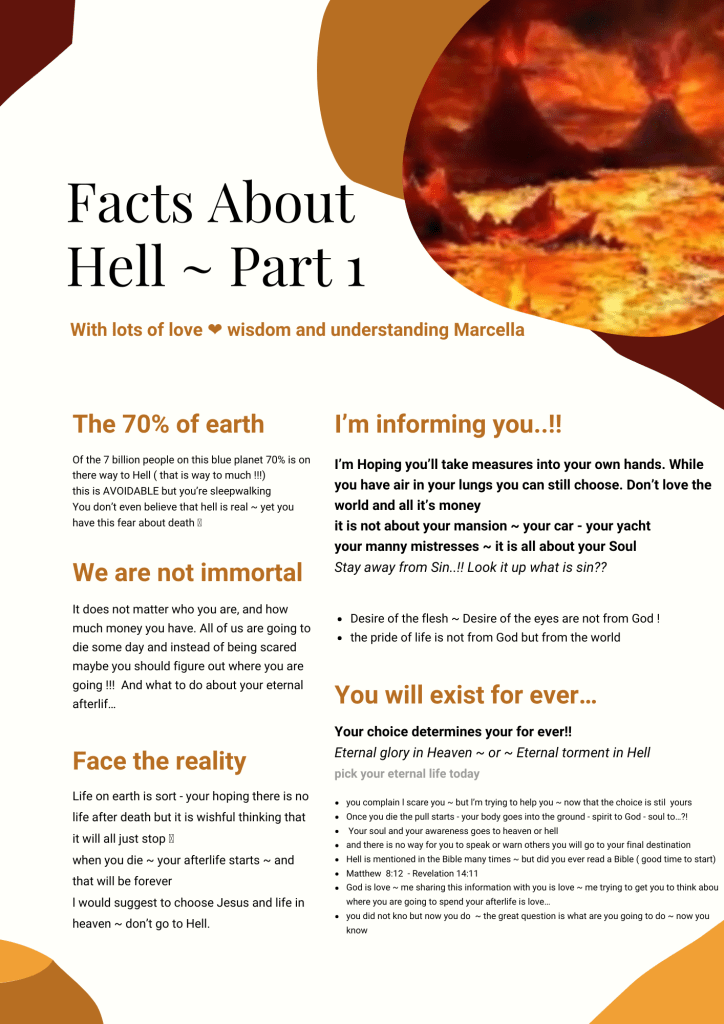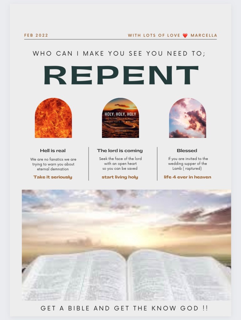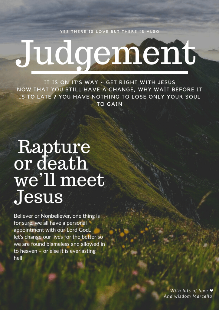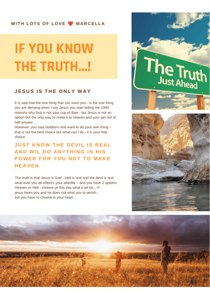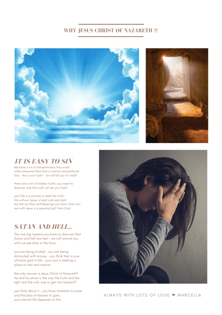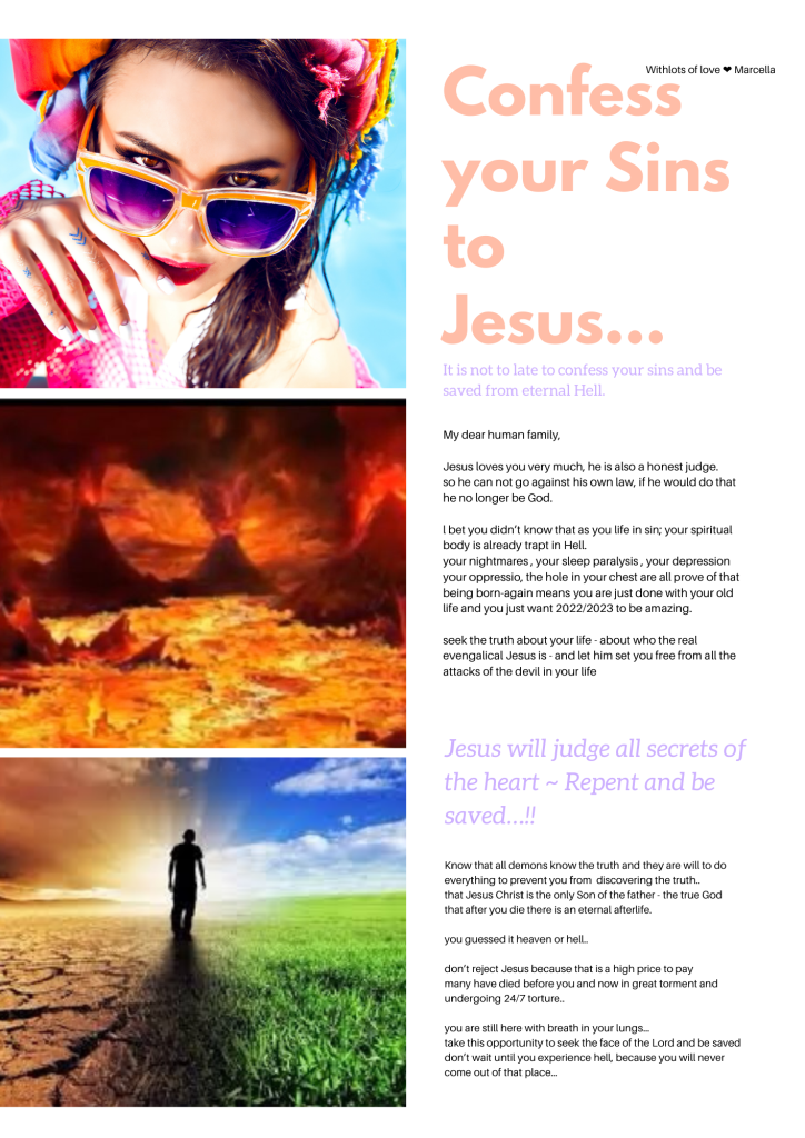 Every page is there to inspire you, but most of all to let you think about your own personal situation.. is there something you need to change in your life..? Are you rightfully informed? All these pages are inspired by the biblical law’s of Holiness. We find that the world knows the name Jesus but does not know the power of that name once you live your life in holiness. The things you might see and read Mid shock you.. you might rebel against it in your mind – but know these are all truth. We are grateful to God because what you did not know yesterday you have learnt today, and this gives you the opportunity to repent from your sins.. change your lifestyle today so you can life in eternity with our Lord Jesus Christ… and you will not face his wrath and judgement.. the first step is willing to change in your heart… than find a small evangelical church where they will teach you all about Jesus. It will shock you that it is not the catholic way. NOT AT ALL