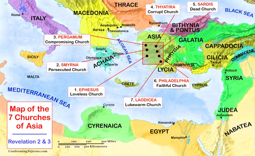 De namen die je ziet staan zijn namen van kerken die in het boek openbaring terug te vinden zijn. Wanneer jij de Heilige Geest ontvangt ben je ook een kerk dat is dus een mooie vergelijking.